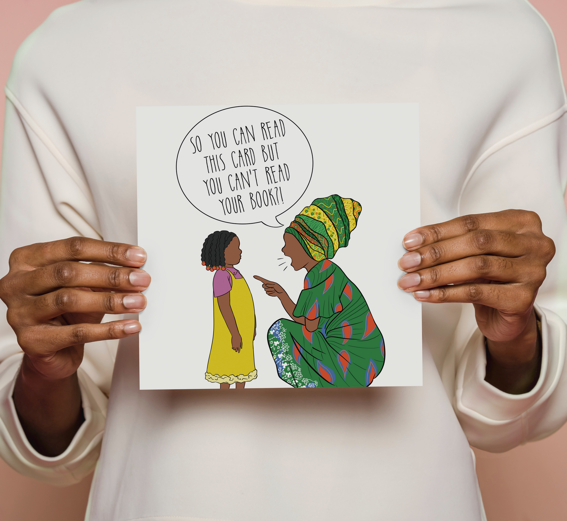 The classic 'so you can't read your book' line. We've all been there, heard it but now it's time to encourage your loved ones to read a book but after after they've read this cool card of course.